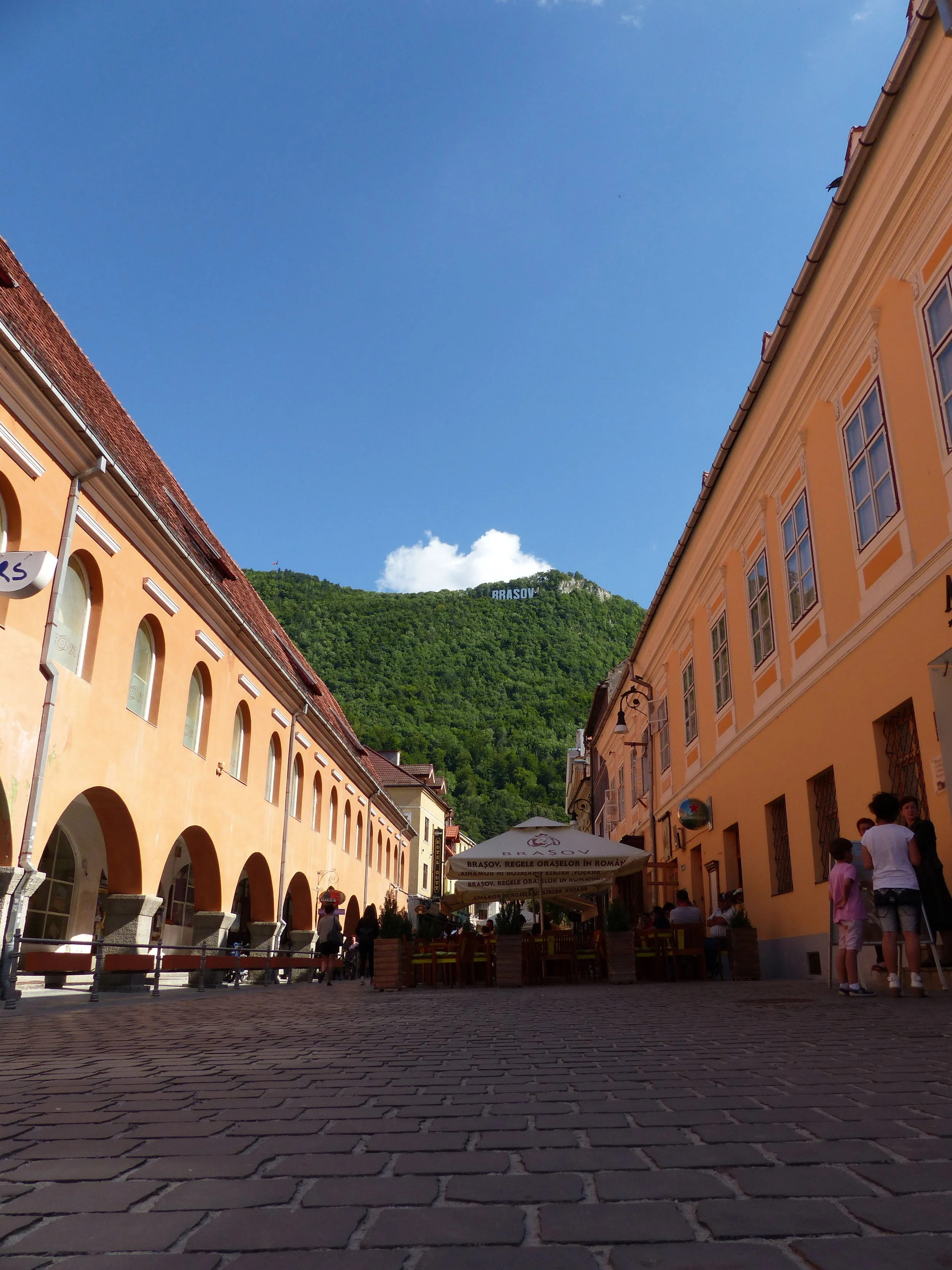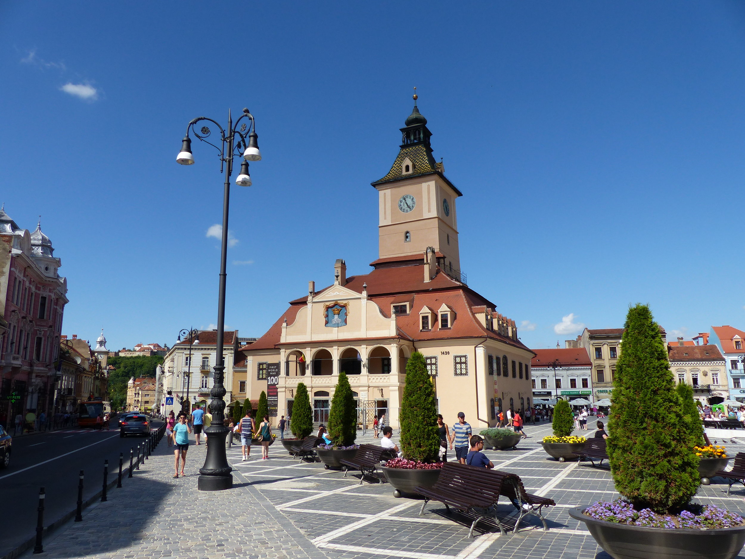 Our last stop before heading back was Brasov. Brasov is located at the foot of some mountains that have a giant "Brasov" sign sitting at the top, seemingly taking a cue from the Hollywood sign in California, but in this instance, I found it just annoying and tacky looking. There is also a cable car that could take you to the top, where there are a restaurant and viewing platform. I thought it would have been amazing to journey to the top, but the guide said we didn't have enough time. That didn't stop my new Danish friend, though. He took off in a sprint across the square to try and accomplish it. He bought the lift tickets, but sadly, by the time a cable car came down, it was full. He had to wait for another, and then time was up, so he had to abandon the plan ... #reasontoreturn.