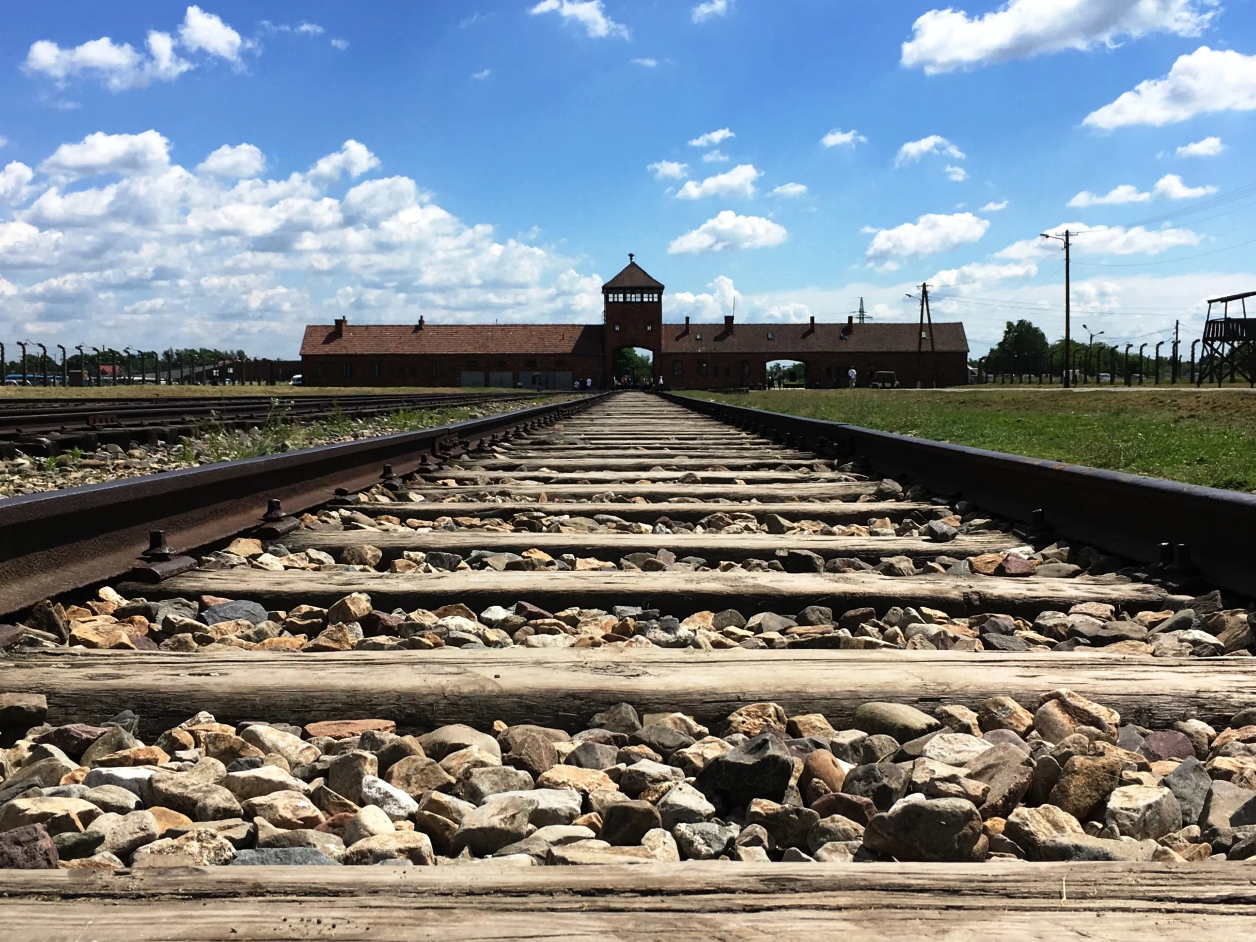Three miles away from Auschwitz I is Auschwitz II (Birkenau). Coming up to the front of Birkenau, you see the train tracks leading up to the gate where there was an unloading platform. Then the tracks crawl under the gate like a toxic liquid seeping through, plank by plank - disappearing into the far depths of Birkenau, taking innocent souls directly to the crematoriums. There was no facade of “work sets you free” at Birkenau - the Nazi goal couldn’t be clearer.