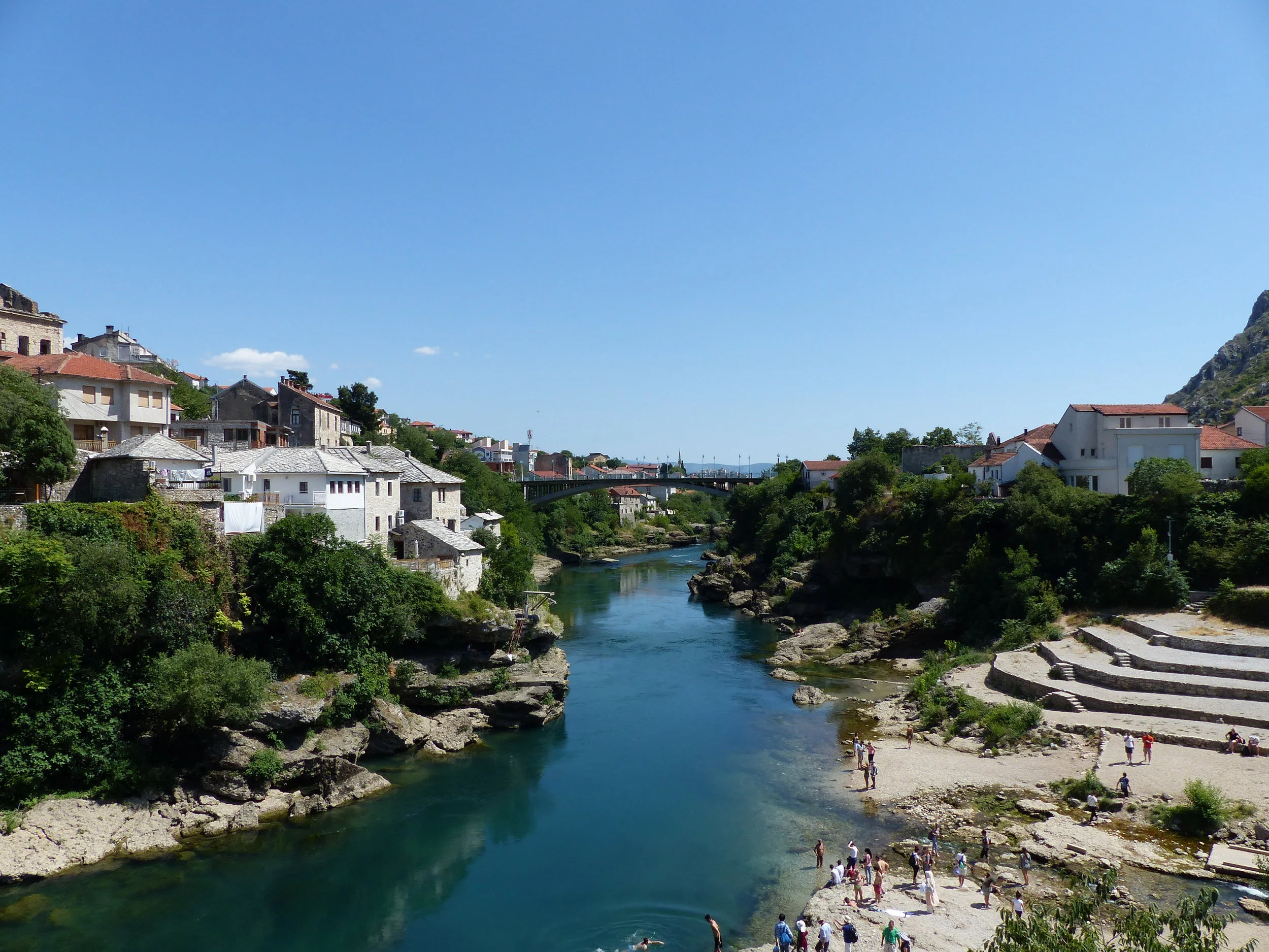 On any given day, you may also catch a local man offering to jump off the bridge into the Neretva River below for 25 or more Euros. It usually becomes a bit of a bartering spectacle now, but people have been jumping off the bridge for hundreds of years. From the bottom by the river, I could see the tourists lined across the bridge with a diver standing atop the railing. In the time of a short breath, he swan-dived over into the water while all of us held our own breath until we saw him break through the top of the river, swimming to shore through the cheers and claps of everyone around. Would you do that for 25 Euros? Looking at the turquoise sparkling water, you can see plenty of rocks crawling up towards the shore of the narrow river, and I think “No, thanks.” I’m much more comfortable jumping out of a plane than ever considering that swan dive off Stari Most, but I appreciate the entertainment.