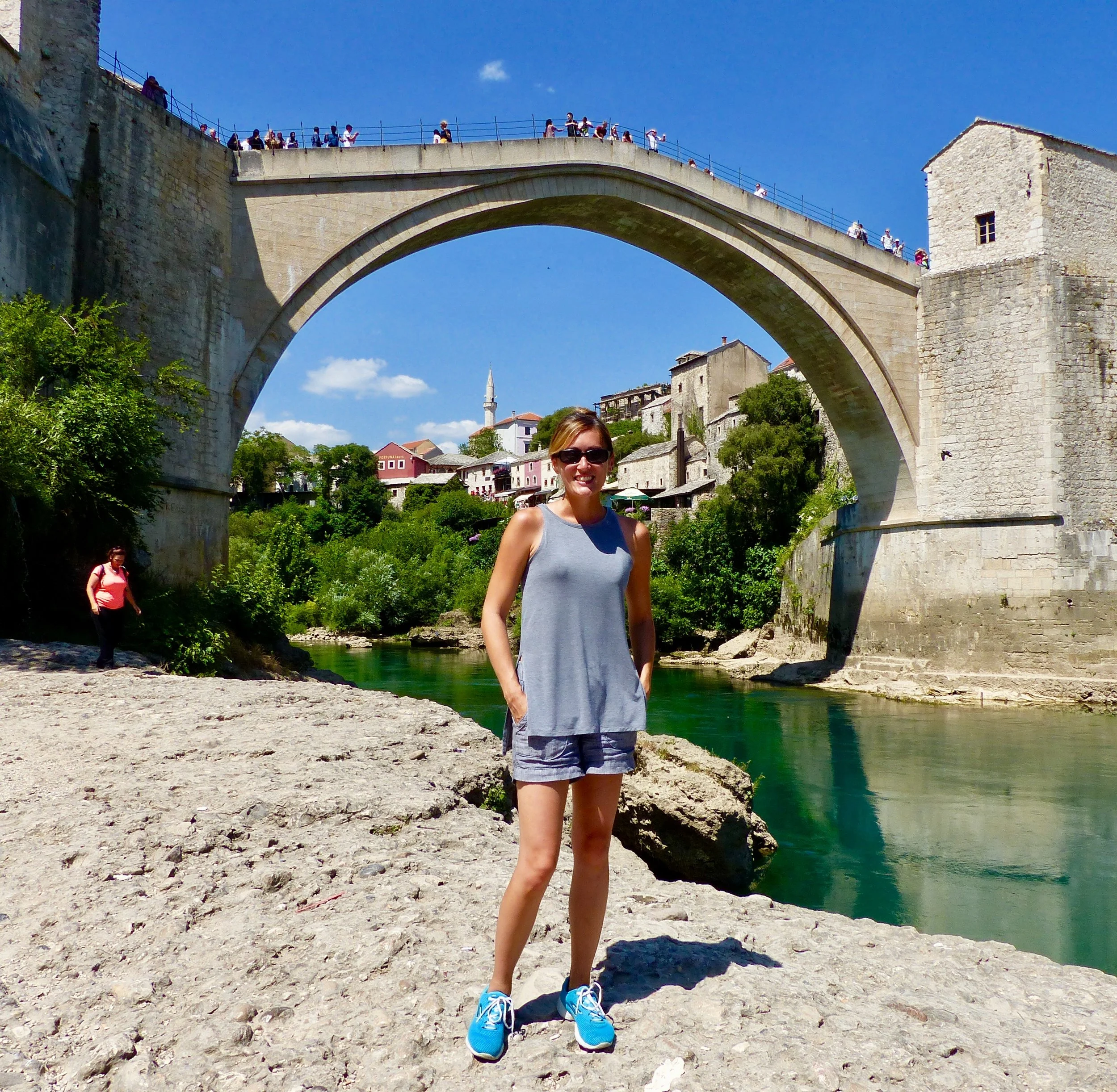 After Kravice, we made our way to Mostar, one of the larger cities in the country, most visually identified by the stunning Stari Most (literally, “Old Bridge”). Originally built in the 1500s, the bridge stood tall until it took a direct hit in the Bosnian War. Using some of the original pieces fished out from the river, the bridge was entirely rebuilt after the war. The top of the bridge has a good amount of limestone that looks gorgeous when you’re standing at the end, but walking over it, I thought I was doomed for another wipeout with how slick it was. Had I not bit it earlier, I probably wouldn’t have been so paranoid, but I imagine I looked like a 95-year-old granny crossing the bridge, trying to keep her balance while packed shoulder-to-shoulder with tourists.