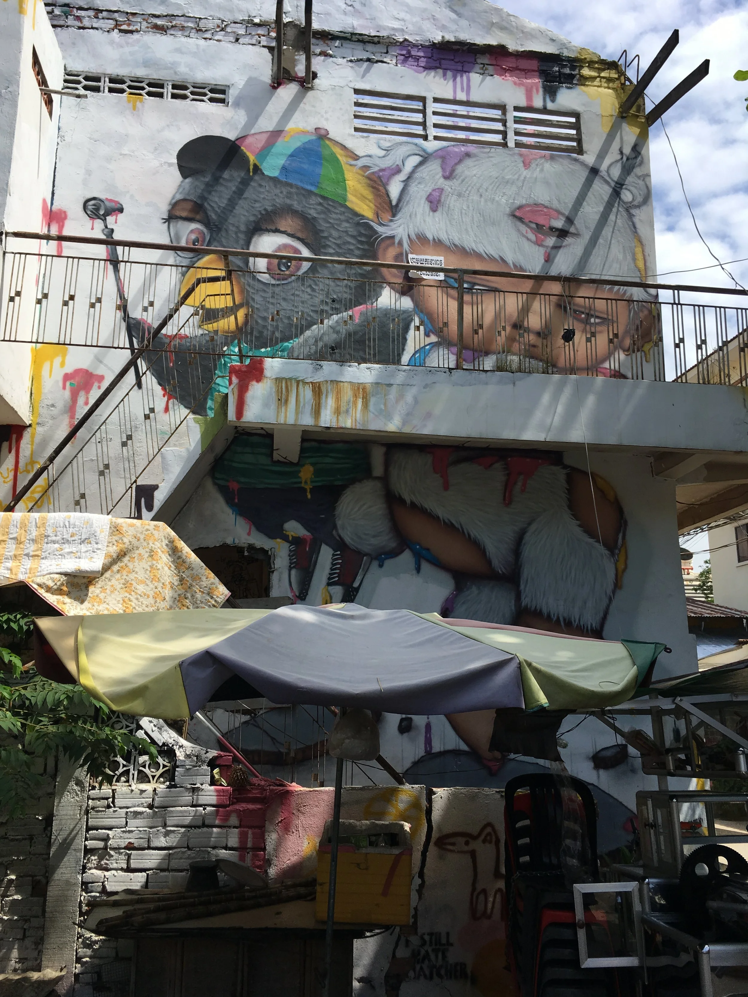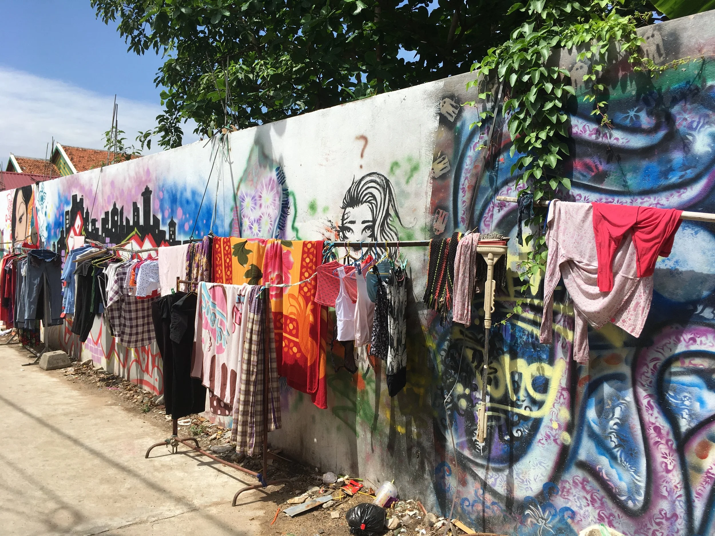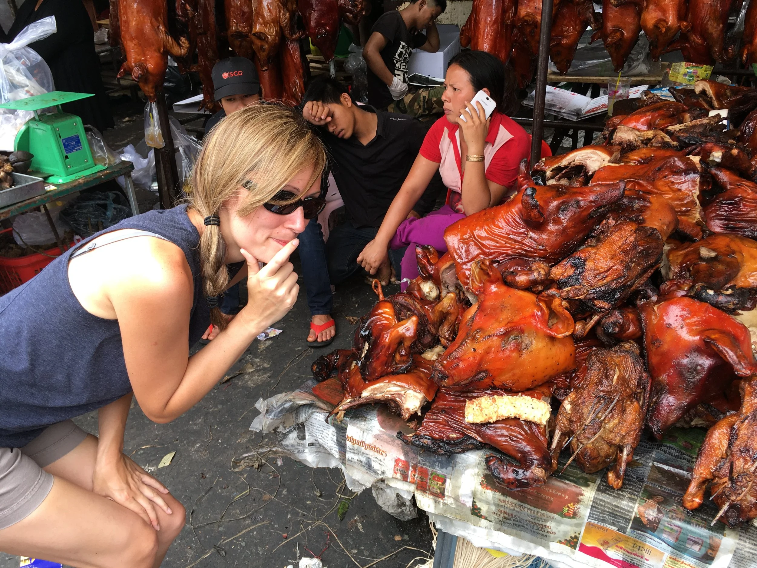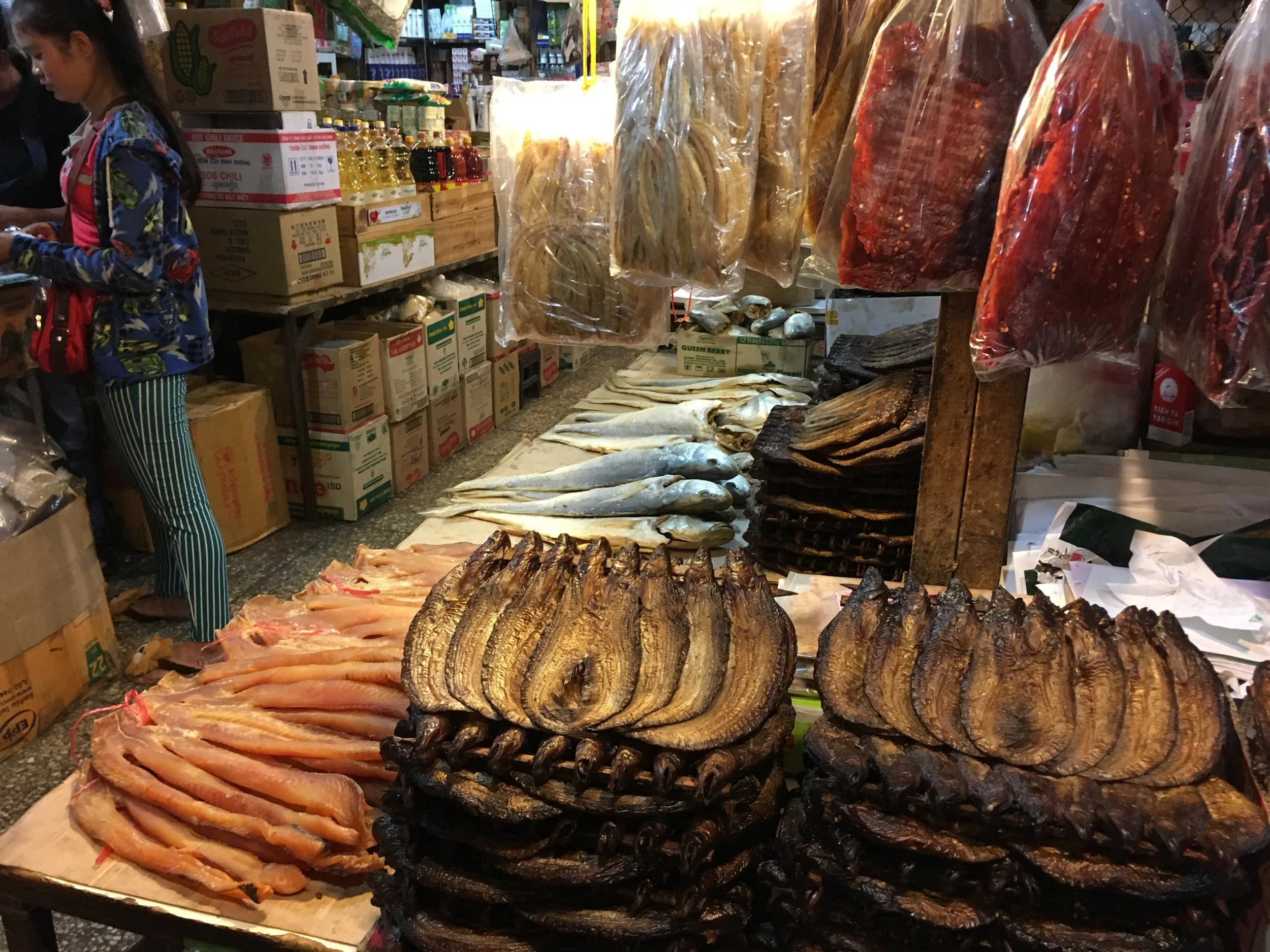 The whole Vespa Adventures team was super friendly, and one of the drivers also takes pictures throughout the tour to send you later, which I love as it’s hard to get candid shots as a solo traveler. We drove around the city taking in the crazy traffic and hodgepodge of electric and internet cables hanging above the streets like a spider web. We stopped at a variety of locations, including a street art area by the old "Lakeside" that sadly has zero remnants of being a lake due to new city plans. We also stopped by a local market where we saw every type of meat and seafood either dried or beheaded. Toward the exit of the market, we stopped at a stall to snack on delicious sticky banana rice cakes wrapped in banana leaves ... that said, I’m confident mine was filled with banana, but I swear the one the branch manager was handed had a very gray-looking fish stuffed in it. The guide kept saying it was definitely banana, but I am still not convinced, because when is banana gray? Mine wasn’t. Oh well, I didn’t eat that one.