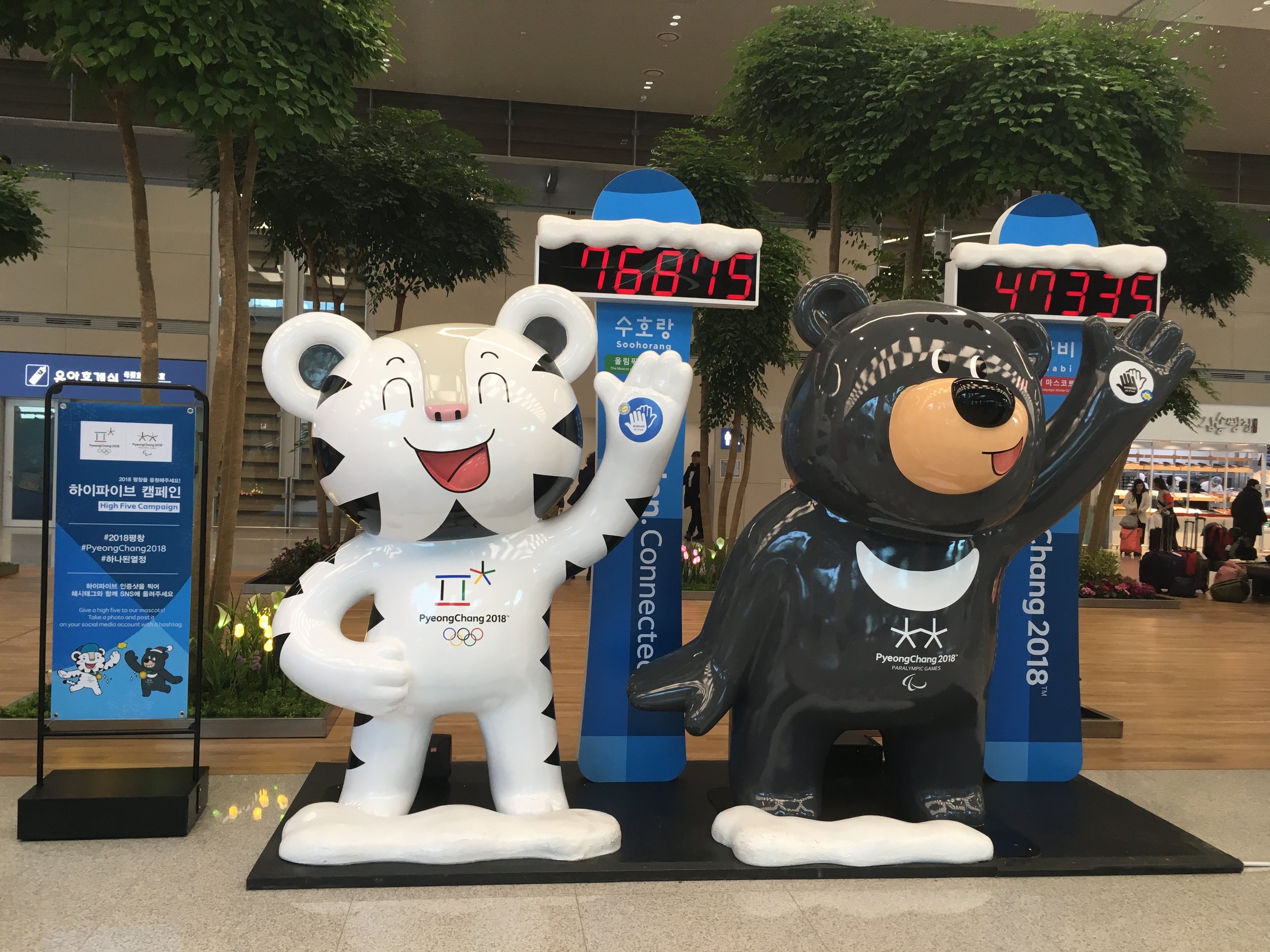 Wheels up from London to Seoul and the flight was less than half full, which wonderfully meant for me, a whole row to myself! In a twelve hour flight in economy, an empty row is like a winning lotto ticket and I was able to lay down and try to get some sleep. In lieu of the Olympics, Seoul also opened a brand new beautiful airport but was only allowing Korean Air (and partners) to land there, it felt so calm and empty. I generally speed walk, almost jog down the terminals after deplaning to get to immigration as quickly as possible before the herd, and after this landing i walked up to about fifteen empty lanes for immigration and was on the other side in two minutes. From there i was greeted by Soohorang and Bandabi, the life size Olympic mascots to remind me what I was doing here. With the excitement bubbling, I proceeded to pick up my pre-ordered SIM card in the arrivals area, although I have international data coverage and text, I wasn’t sure how strong it would be, especially in the more remote Olympic areas. Then I popped onto the convenient, efficient and immaculately clean AREX train to guide me into my adventure beginning in the heart of Seoul, I had a lot to tackle in three days!