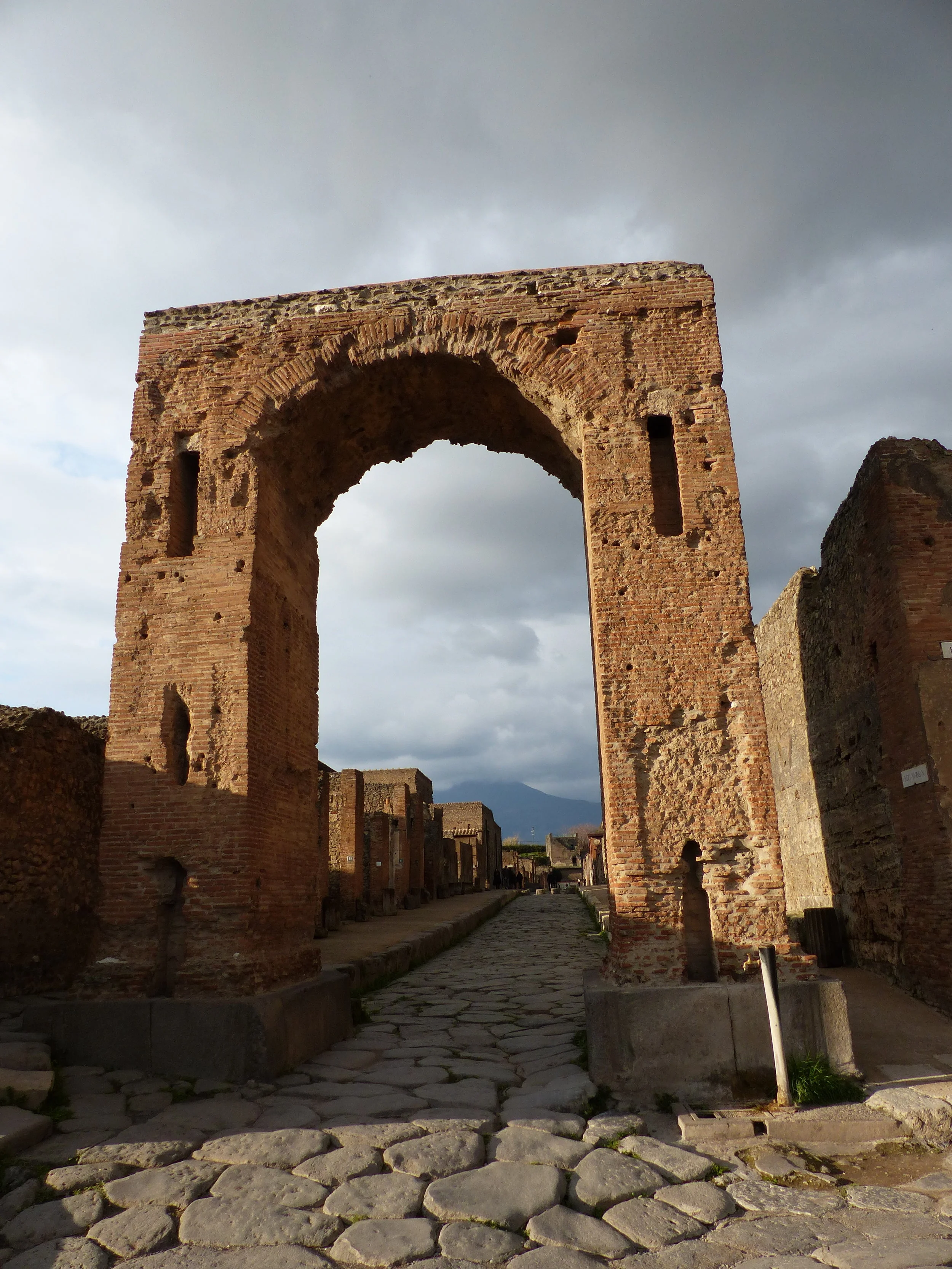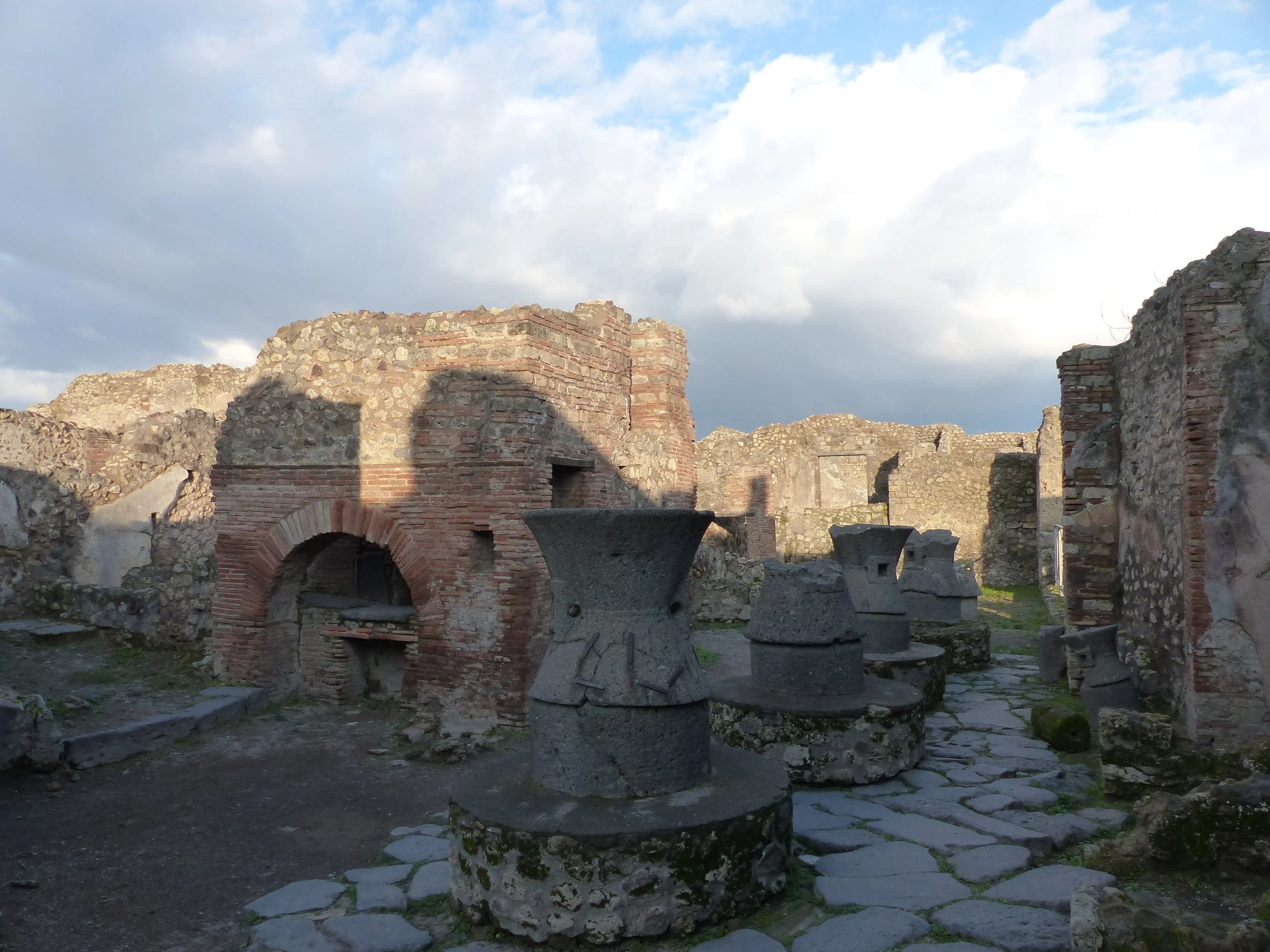 The footprint of Pompeii is enormous and I have to remind myself, this was a full city. Spending 3-4 hours there until the sun was setting for the day and the site was closing, I was only able to tackle about half of the site. For the dead of winter, the weather was quite decent, about 45F and the sun breaking out through the clouds. Walking through stone streets, it had a slight eeriness to it, especially when I found myself the only soul around. It was so quiet and a little foreboding looking out thinking what a beautiful view at the volcano, yet the effects of the horrific volcanic destruction is why you are here. You remind yourself, you are in essence, walking a gravesite. Although excavated, you walk through the shells of homes. The excavated pots and pans have been moved to another area, where you just find them catalogued in rows. Nearby, protected in glass, you can also see some of the victims that were mummified by the lava, their last movement frozen in time.